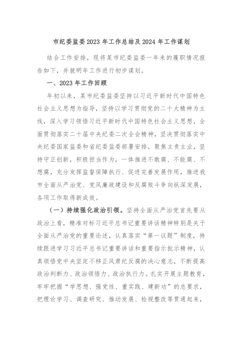 / 市纪委监委2023年工作总结及2024年工作谋划