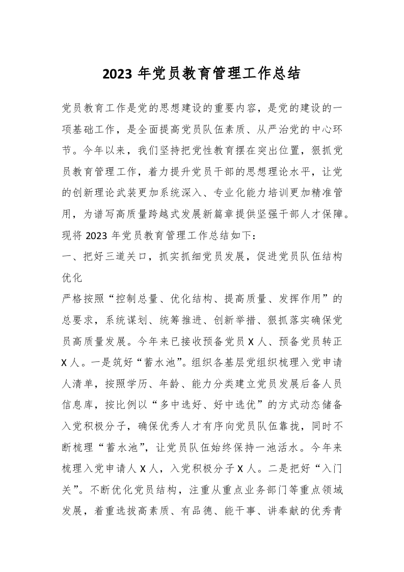 / 有关2023年党员教育管理工作总结