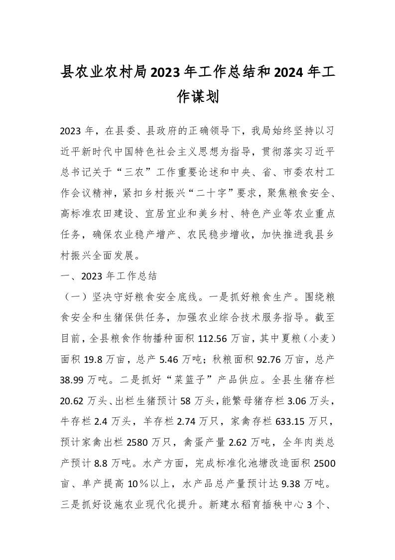 / 县农业农村局2023年工作总结和2024年工作谋划