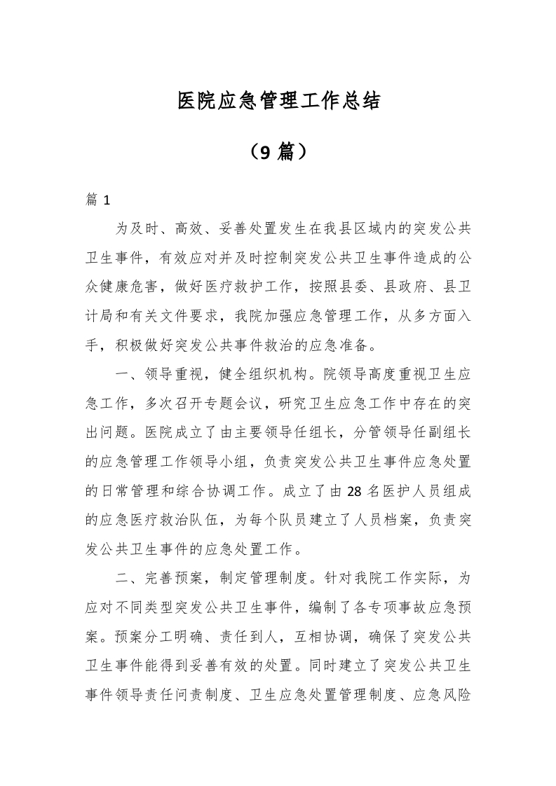 / (9篇)医院应急管理工作总结
