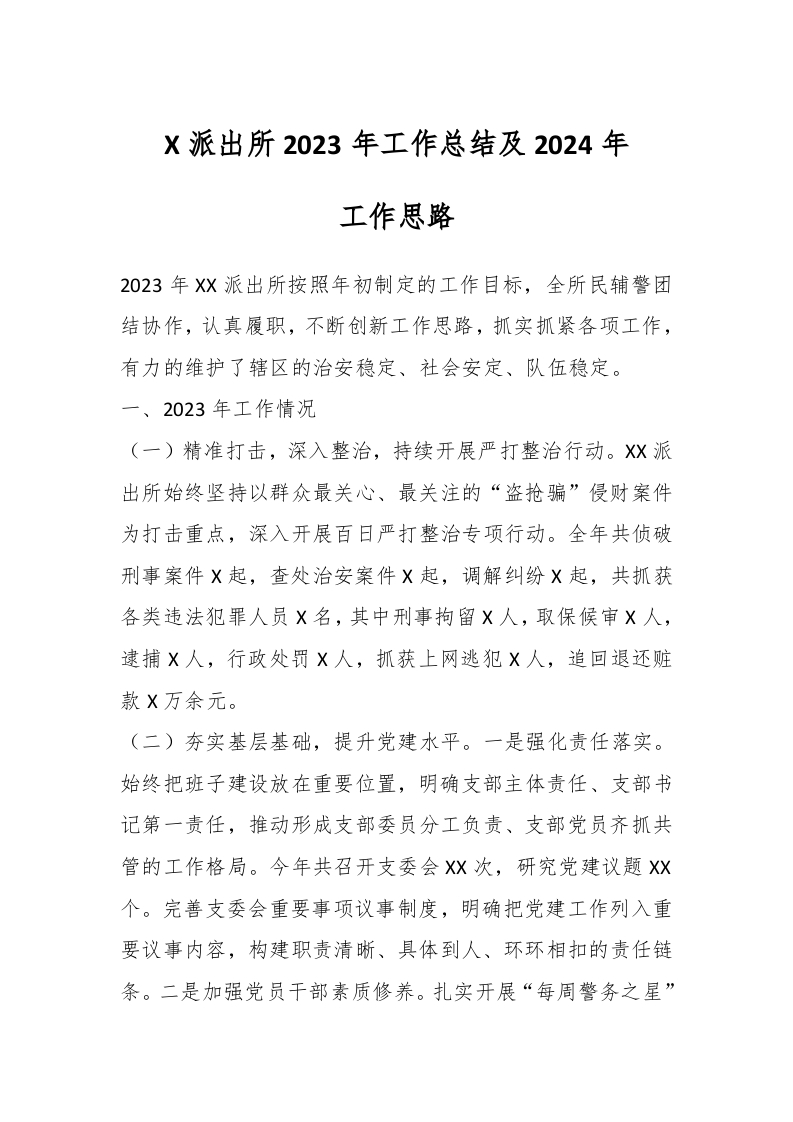 / X派出所2023年工作总结及2024年工作思路