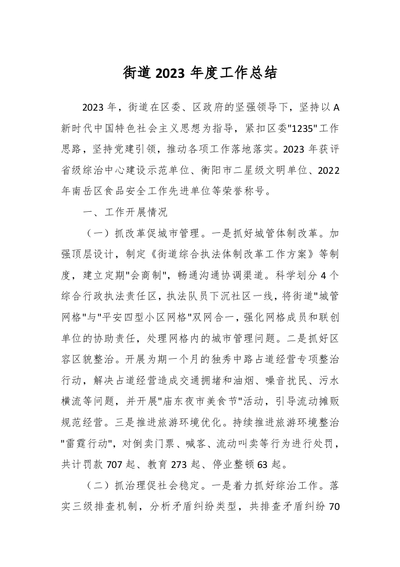 / 街道2023年度工作总结