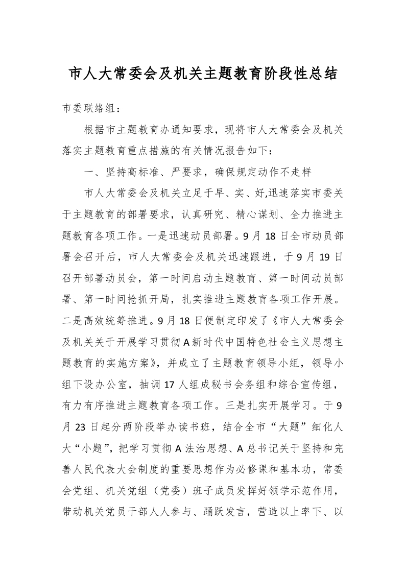 / 市人大常委会及机关主题教育阶段性总结