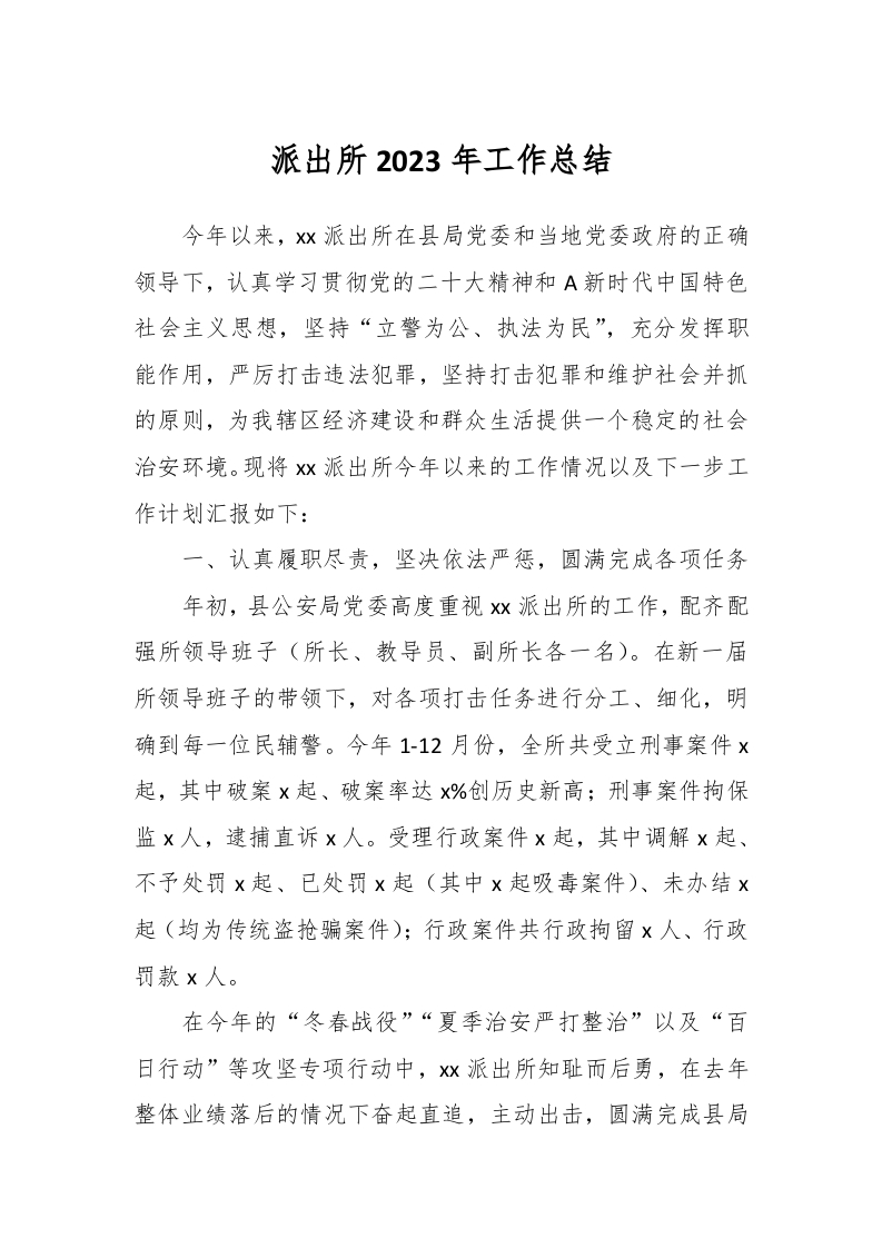 / 派出所2023年工作总结