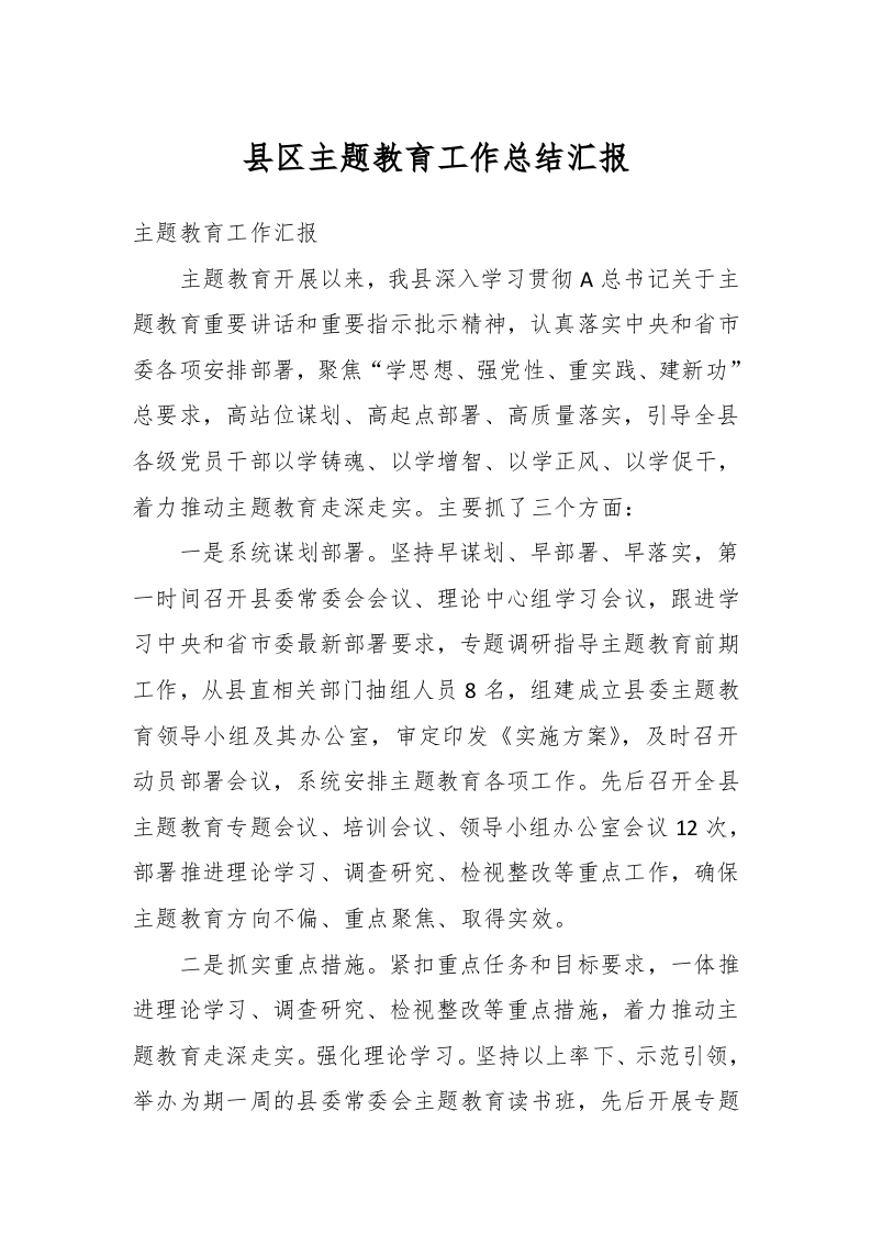 / 县区主题教育工作总结汇报