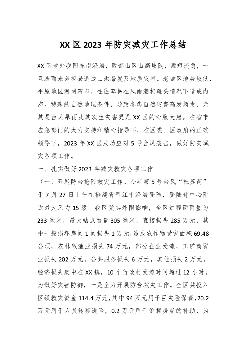 / XX区2023年防灾减灾工作总结
