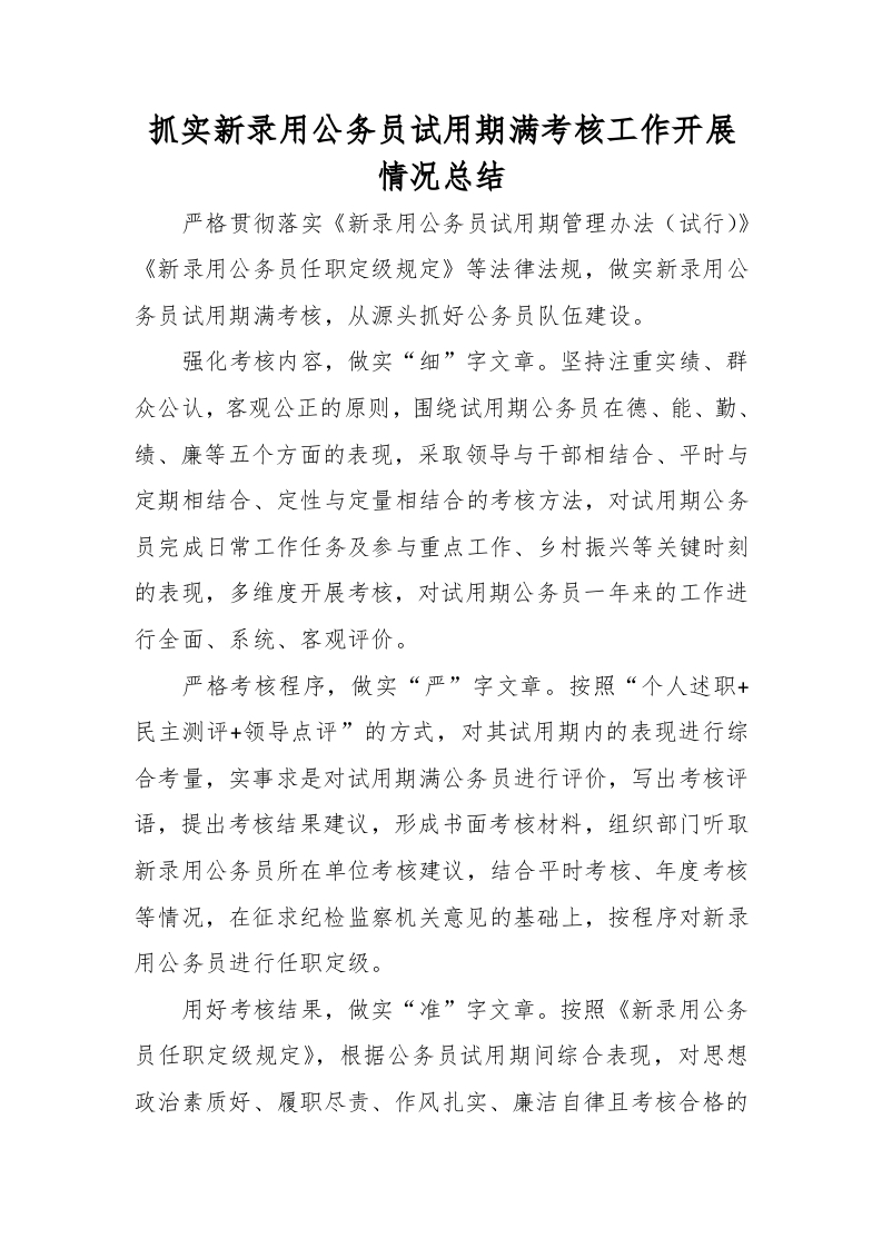 / 抓实新录用公务员试用期满考核工作 开展情况总结