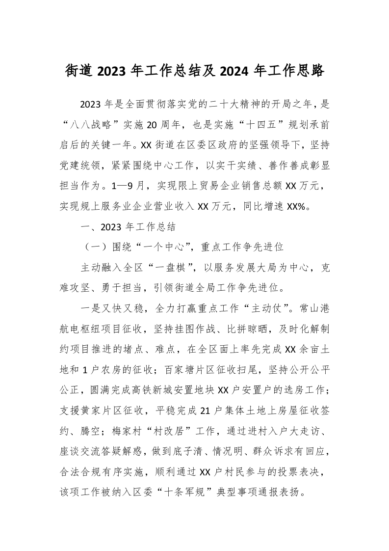 / 街道2023年工作总结及 2024年工作思路