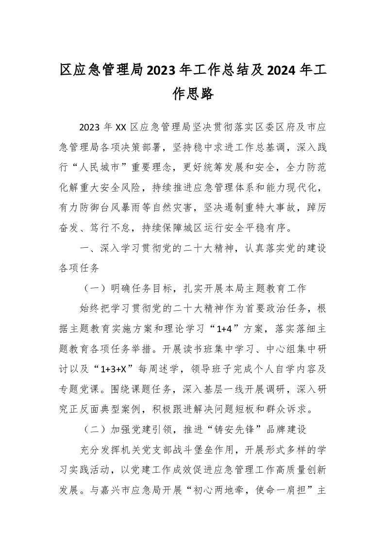 / 区应急管理局2023年工作总结及2024年工作思路