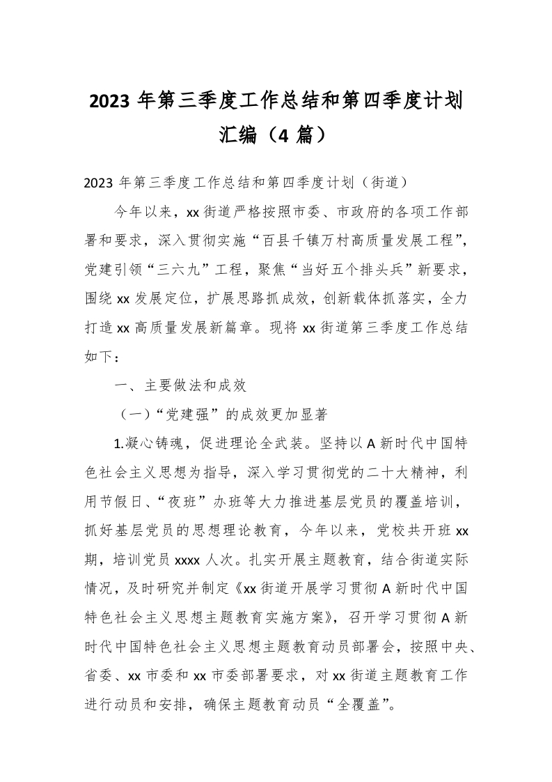/ (4篇)2023年第三季度工作总结和第四季度计划汇编
