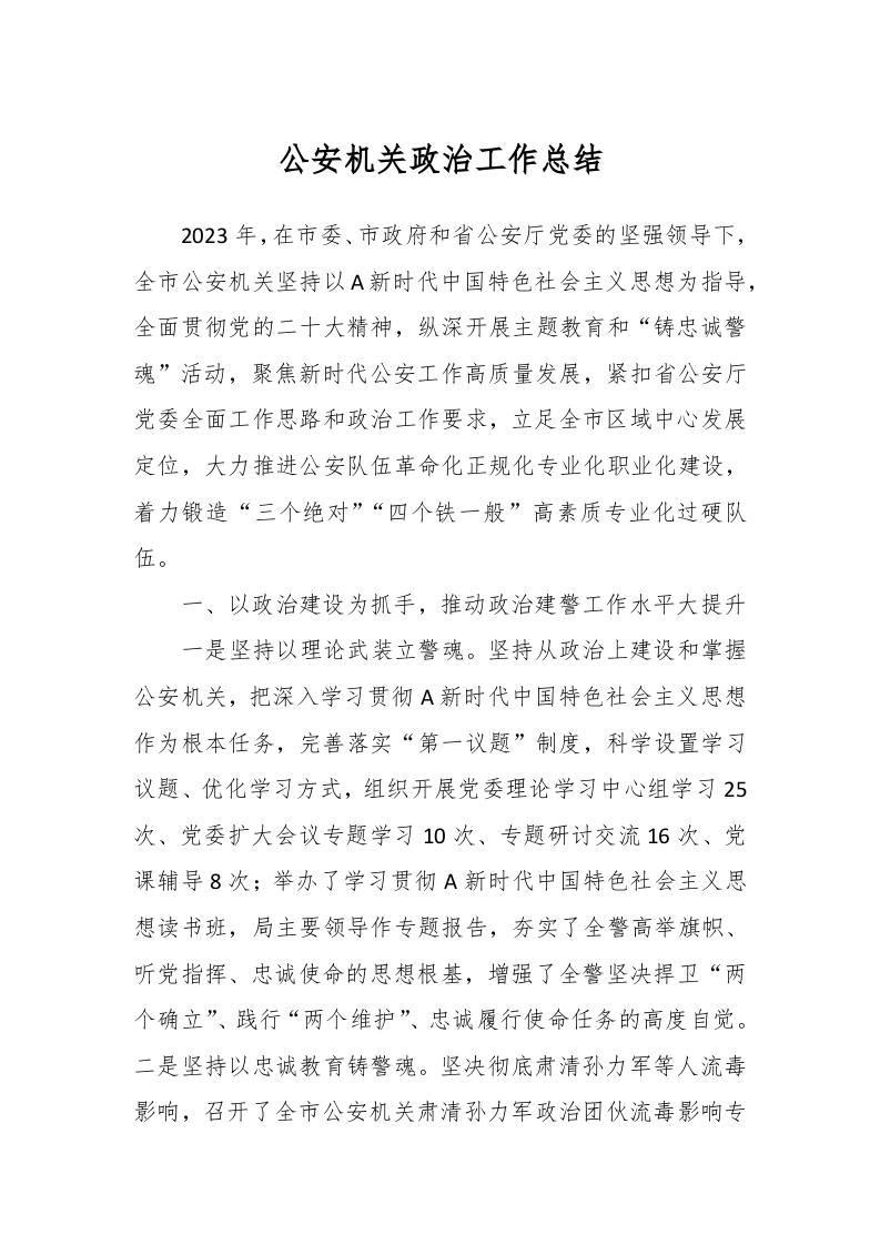 / 公安机关政治工作总结