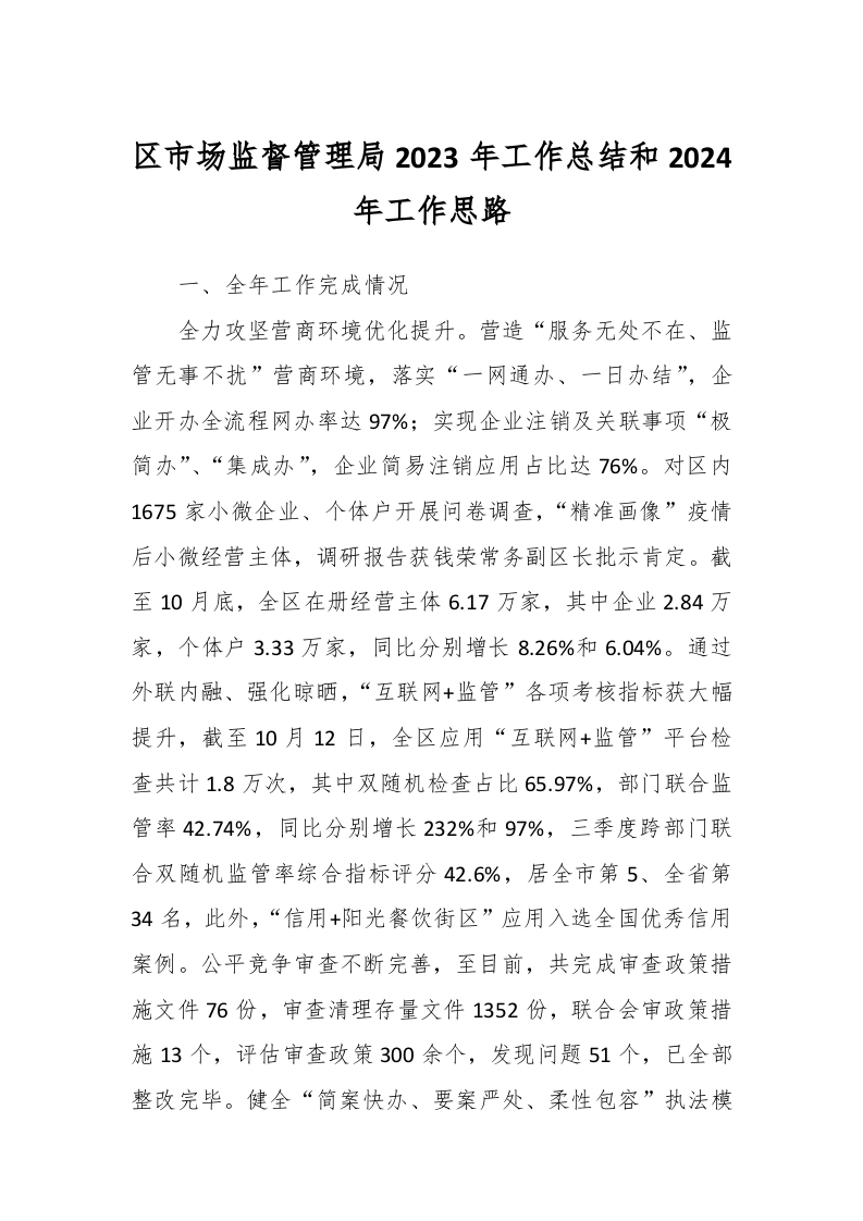 / 区市场监督管理局2023年工作总结和2024年工作思路