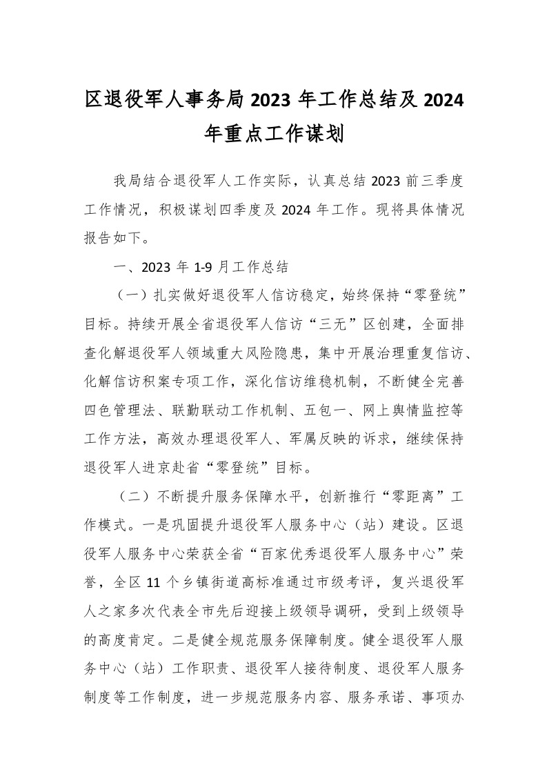 / 区退役军人事务局2023年工作总结及2024年重点工作谋划