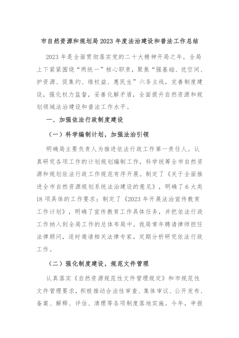 / 市自然资源和规划局2023年度法治建设和普法工作总结