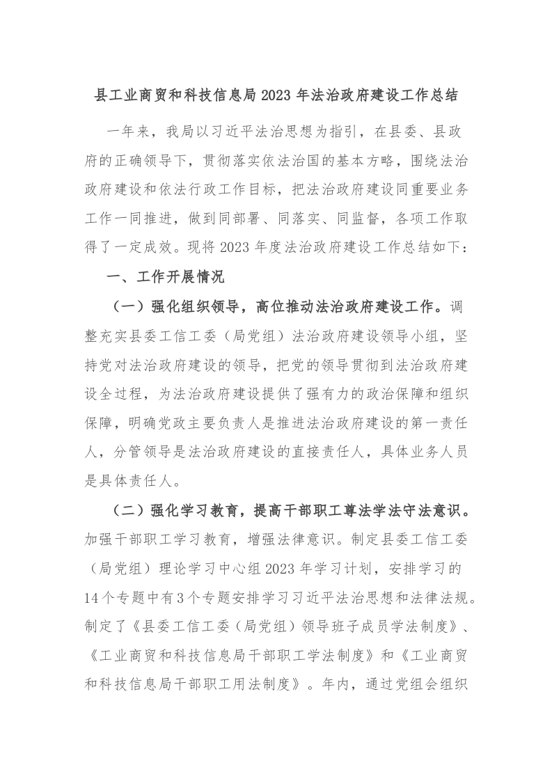 / 县工业商贸和科技信息局2023年法治政府建设工作总结