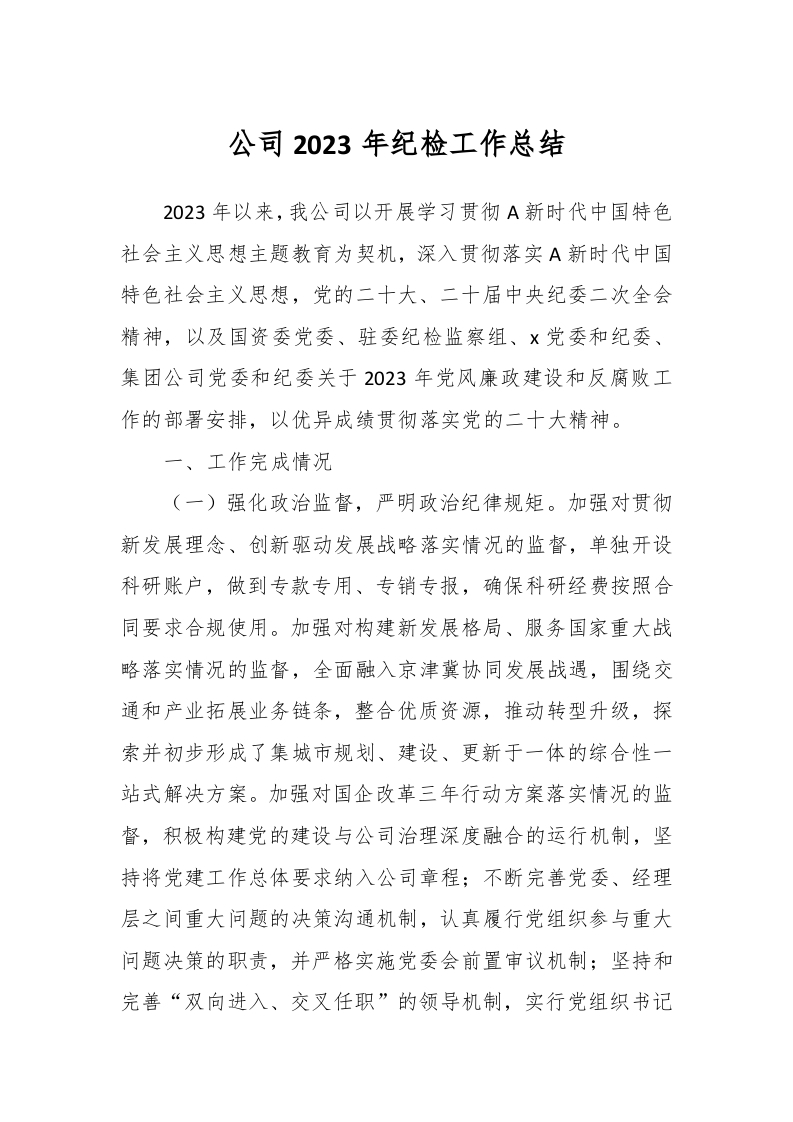 公司2023年纪检工作总结