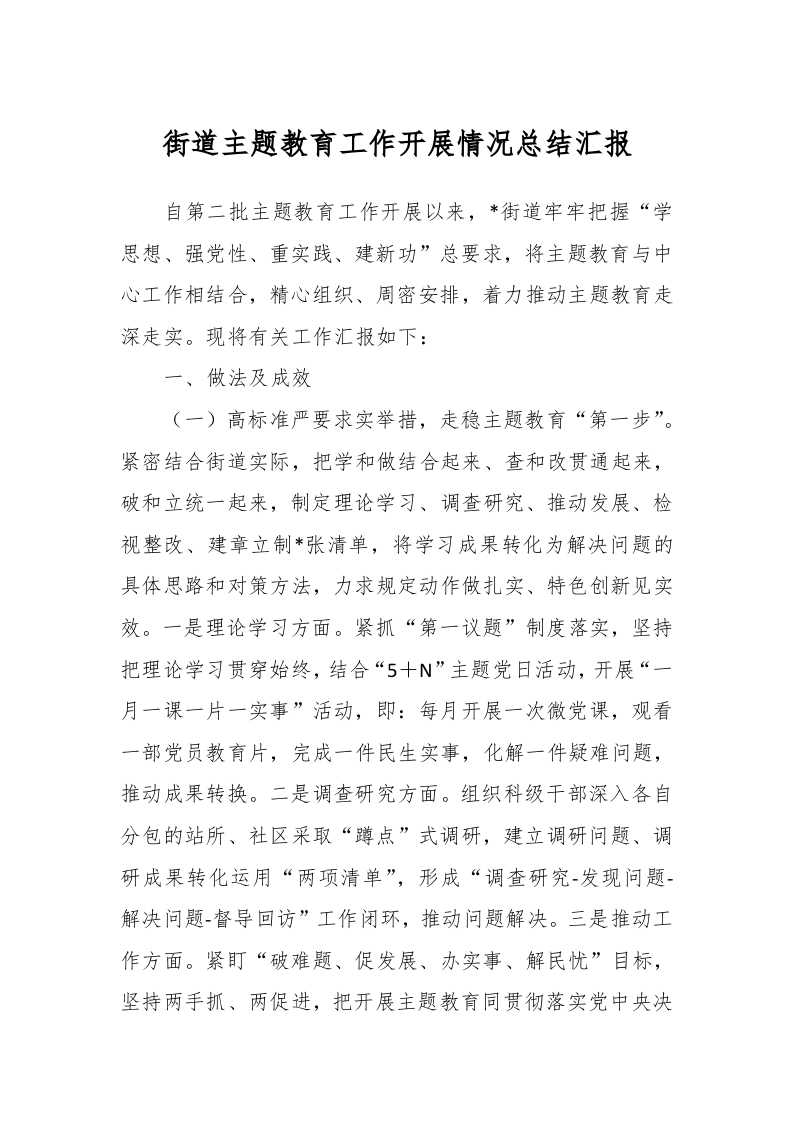 / 街道主题教育工作开展情况总结汇报