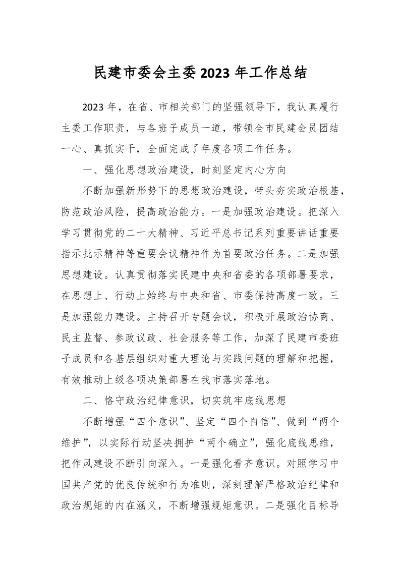 / 民建市委会主委2023年工作总结