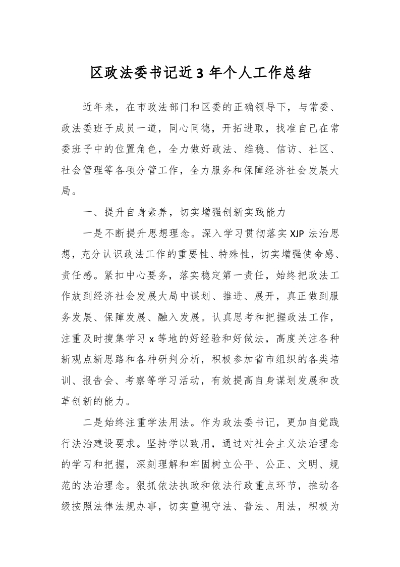 / 区政法委书记近3年个人工作总结