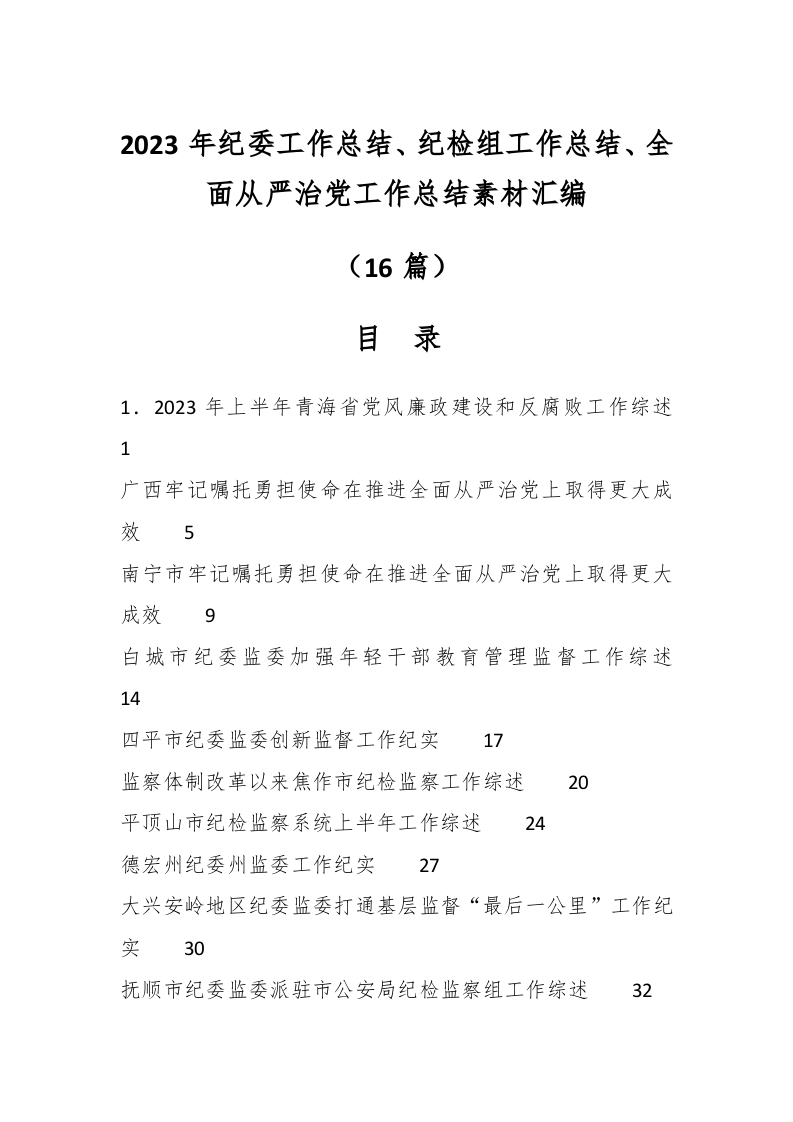 / (16篇)2023年纪委工作总结、纪检组工作总结、全面从严治党工作总结素材汇编