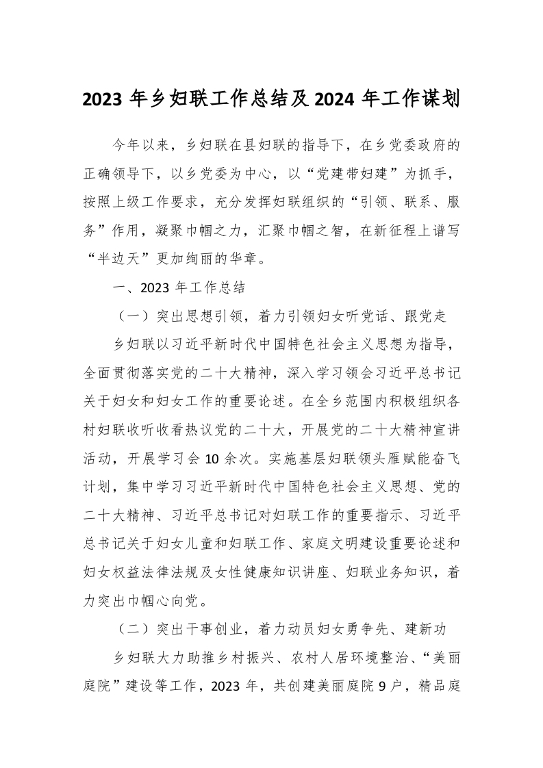 / 2023年乡妇联工作总结及2024年工作谋划