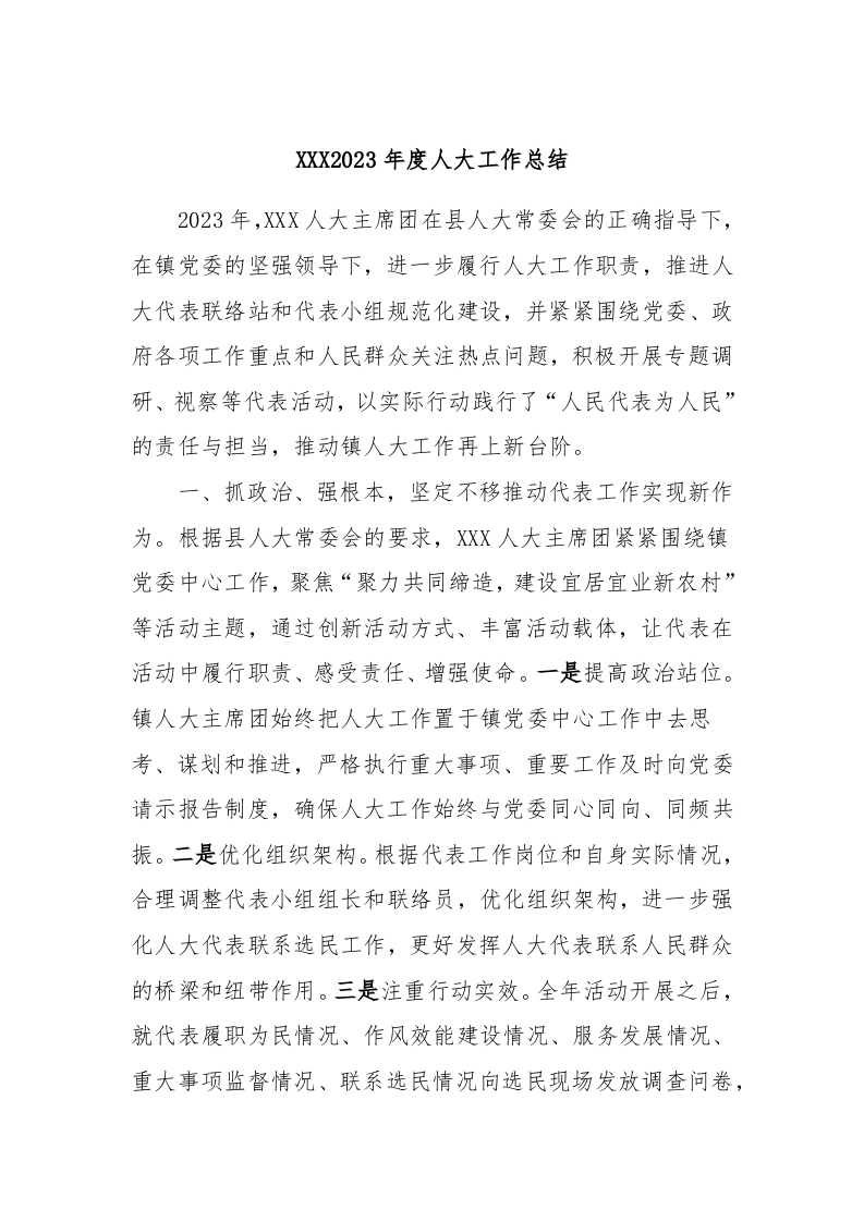 / XXX2023年度人大工作总结