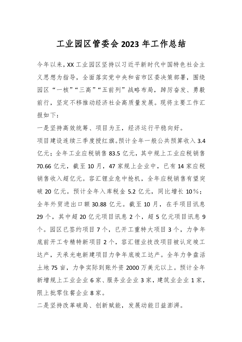 / 工业园区管委会2023年工作总结