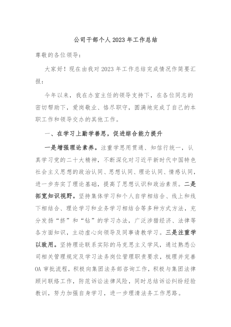/ 公司干部个人2023年工作总结