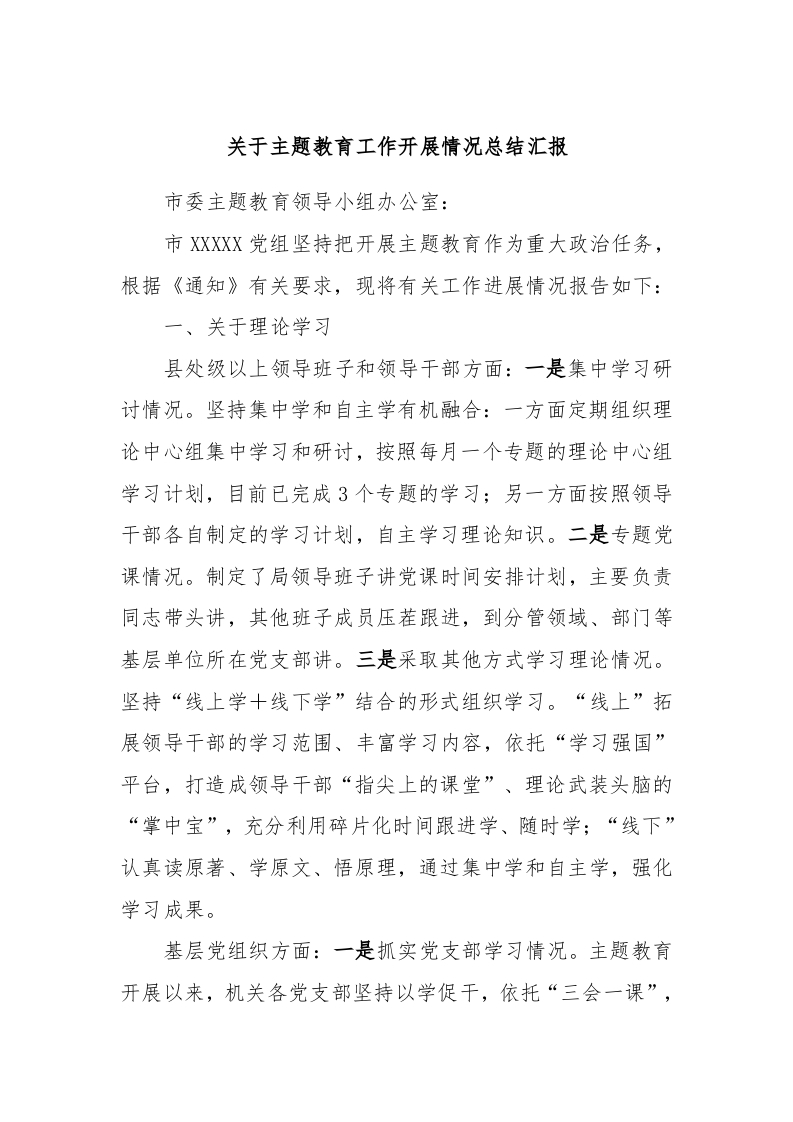 / 关于主题教育工作开展情况总结汇报
