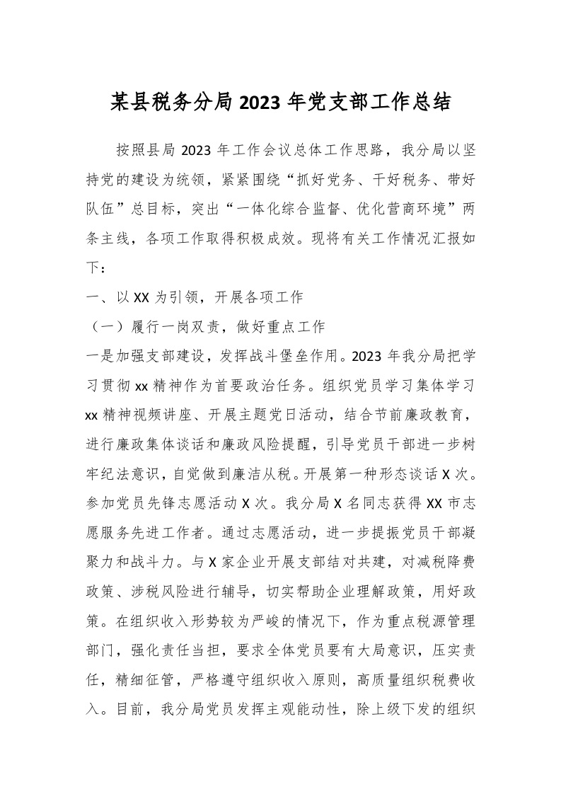 / 某县税务分局2023年党支部工作总结