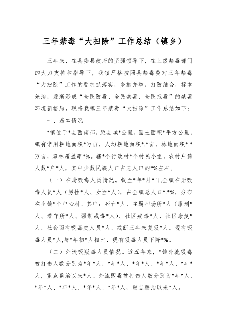 / 三年禁毒“大扫除”工作总结(镇乡)