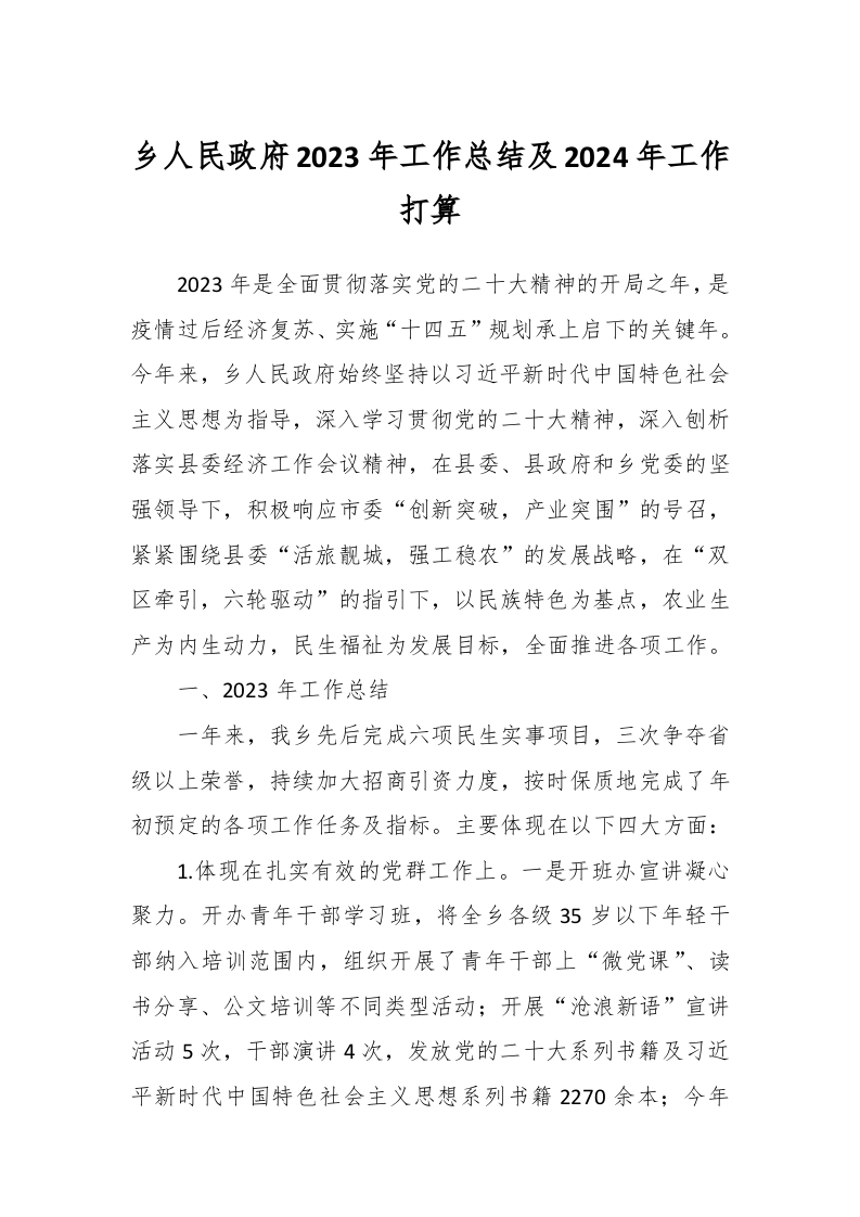 / 乡人民政府2023年工作总结及2024年工作打算