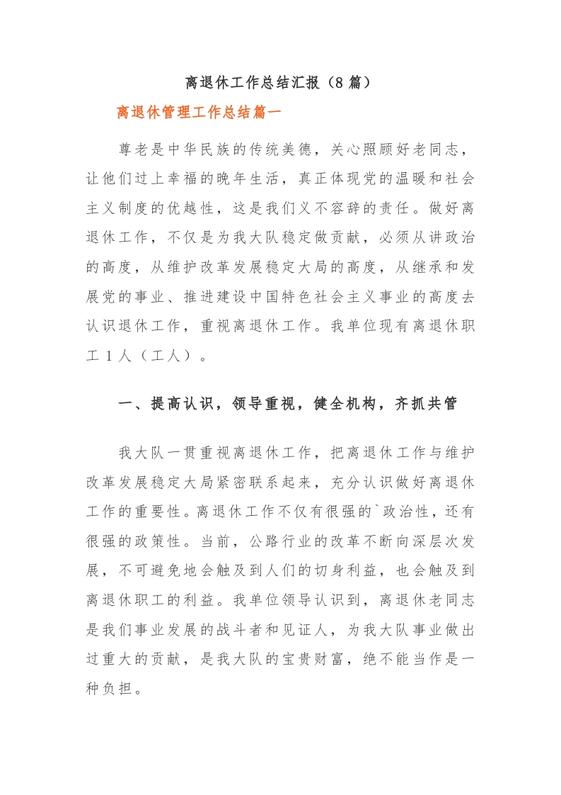 (8篇)离退休工作总结汇报