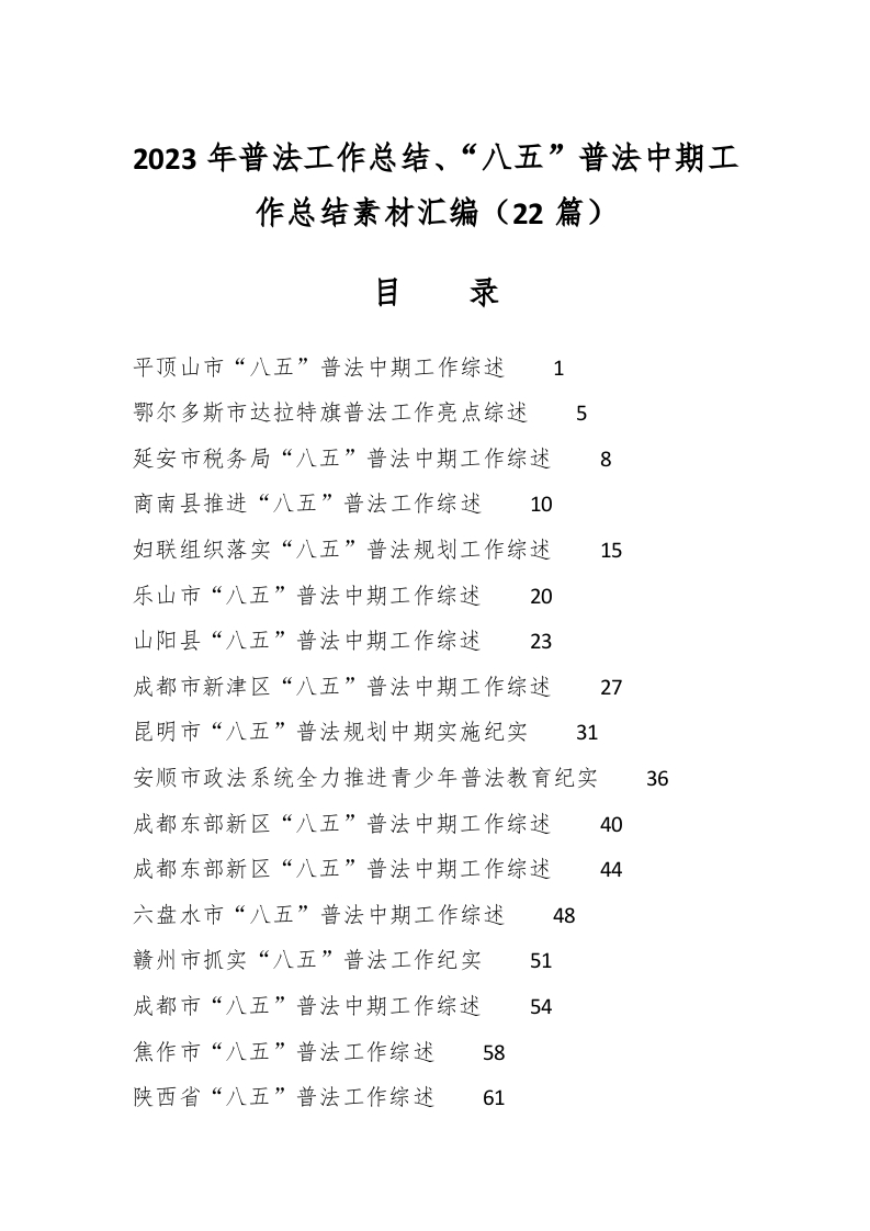 / (22篇)2023年普法工作总结、“八五”普法中期工作总结素材汇编