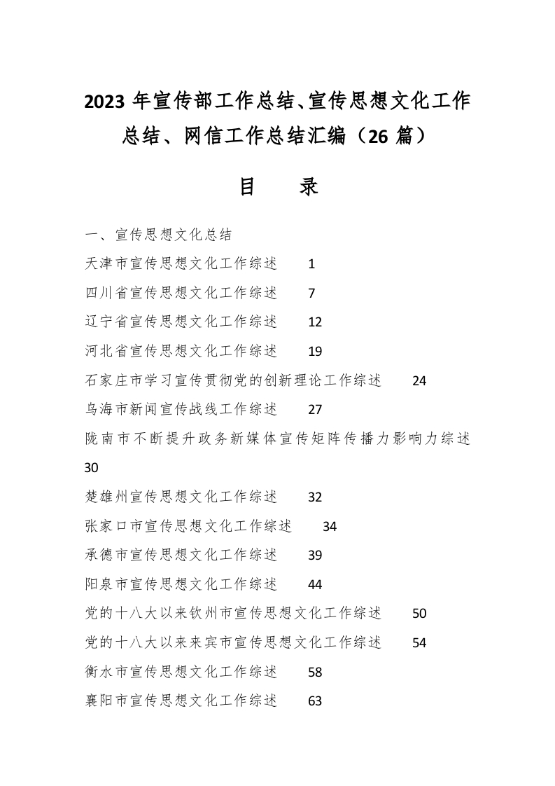 / (26篇)2023年宣传部工作总结、宣传思想文化工作总结、网信工作总结汇编