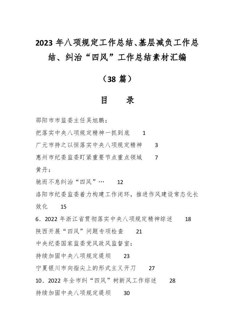 / (38篇)2023年八项规定工作总结、基层减负工作总结、纠治“四风”工作总结素材汇编