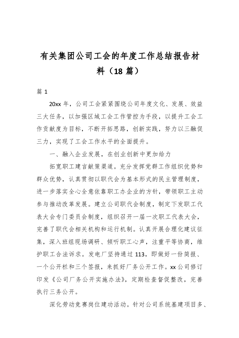 / (18篇)有关集团公司工会的年度工作总结报告材料