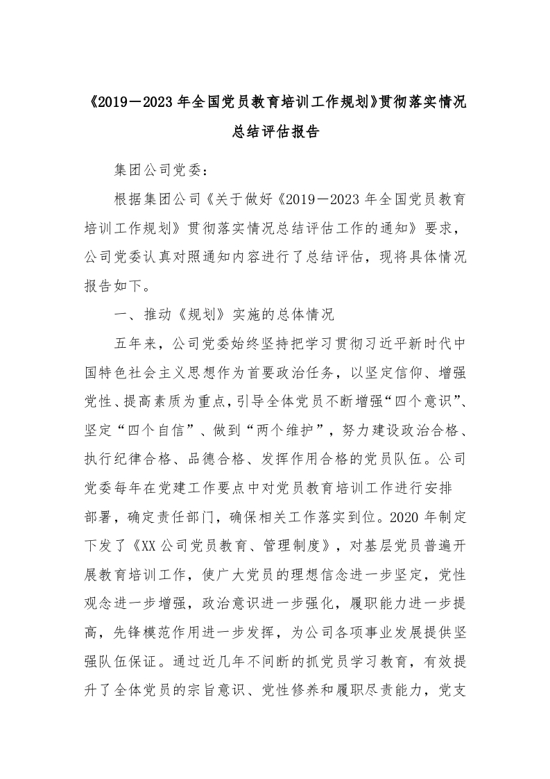 / 《2019-2023年全国党员教育培训工作规划》贯彻落实情况总结评估报告