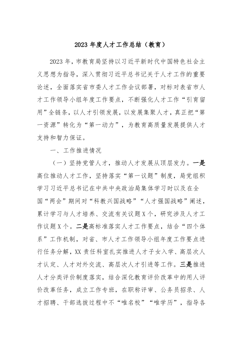 / 2023年度人才工作总结(教育)