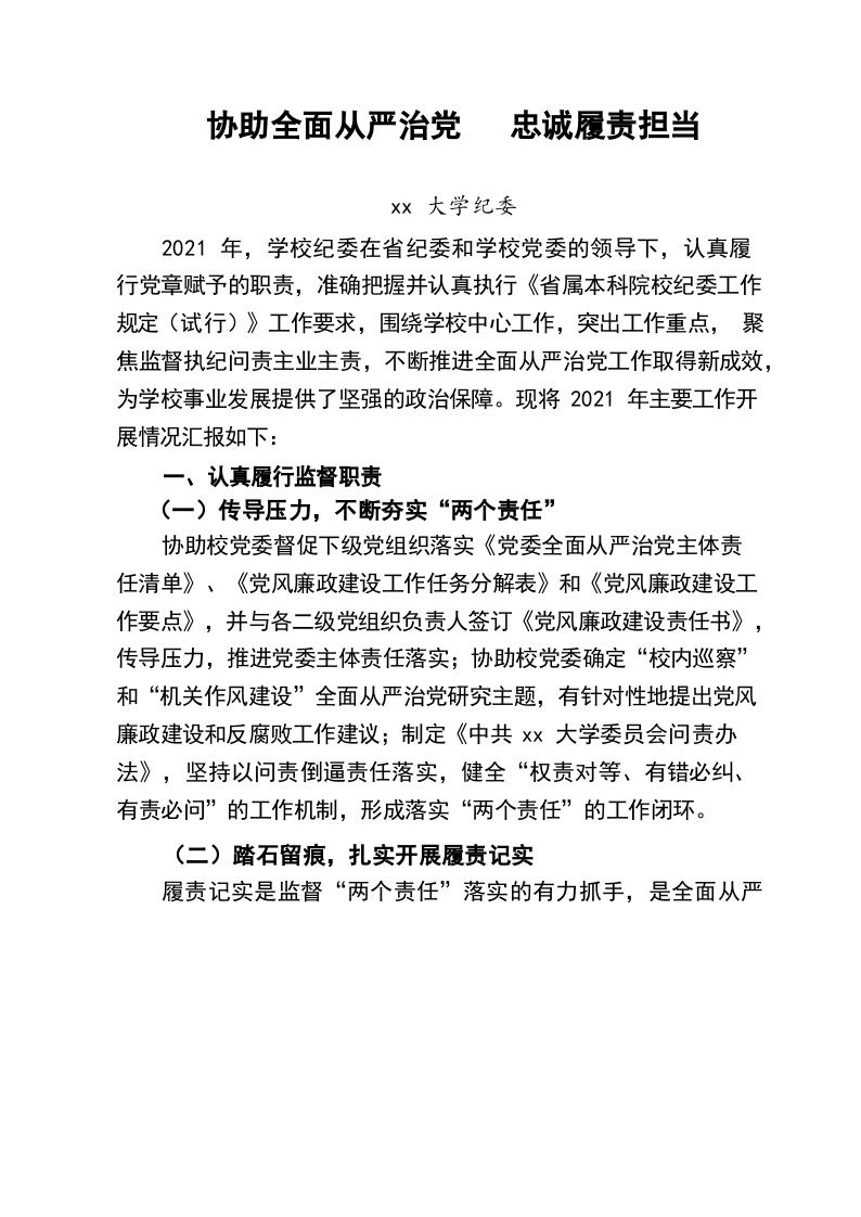 / (1.11)大学纪委工作总结