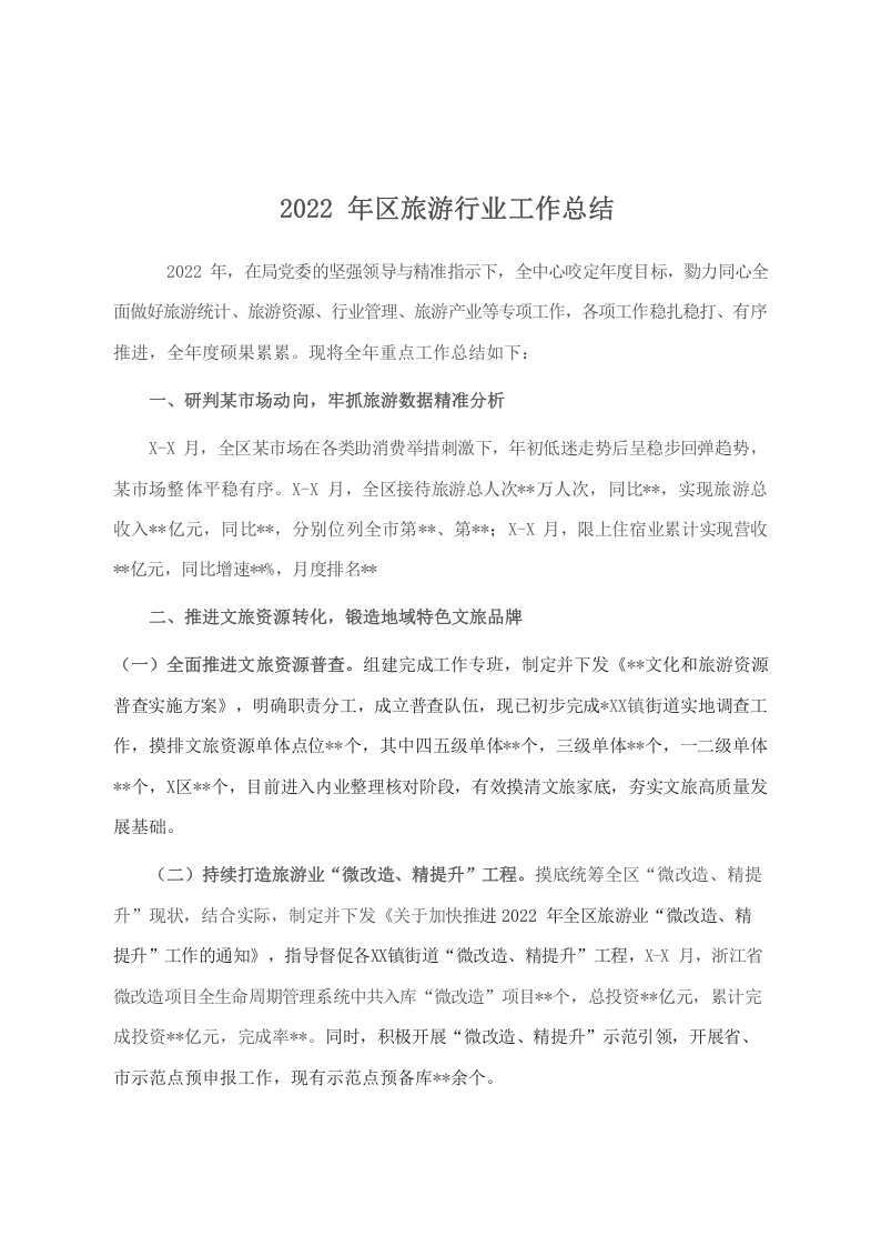 / (10.24)2022年区旅游行业工作总结