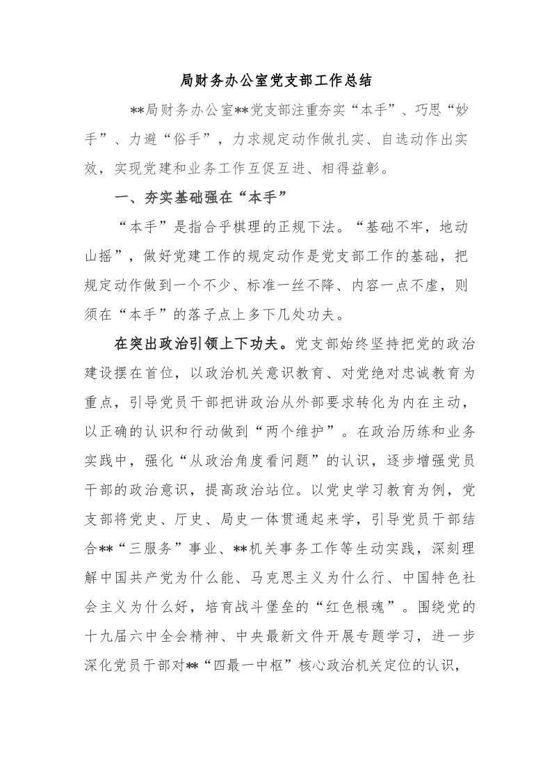 (11.1)局财务办公室党支部工作总结