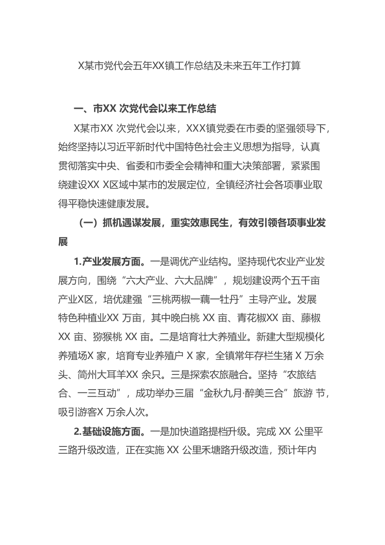 (11.2)市党代会五年来乡镇工作总结及未来五年工作打算