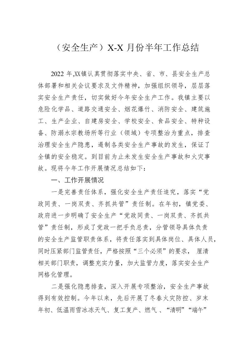 / (安全生产)1-6月份半年工作总结