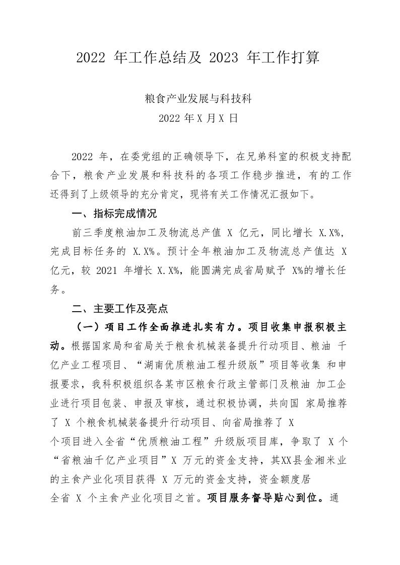 / (粮食产业科)2022年工作总结及2023年工作打算