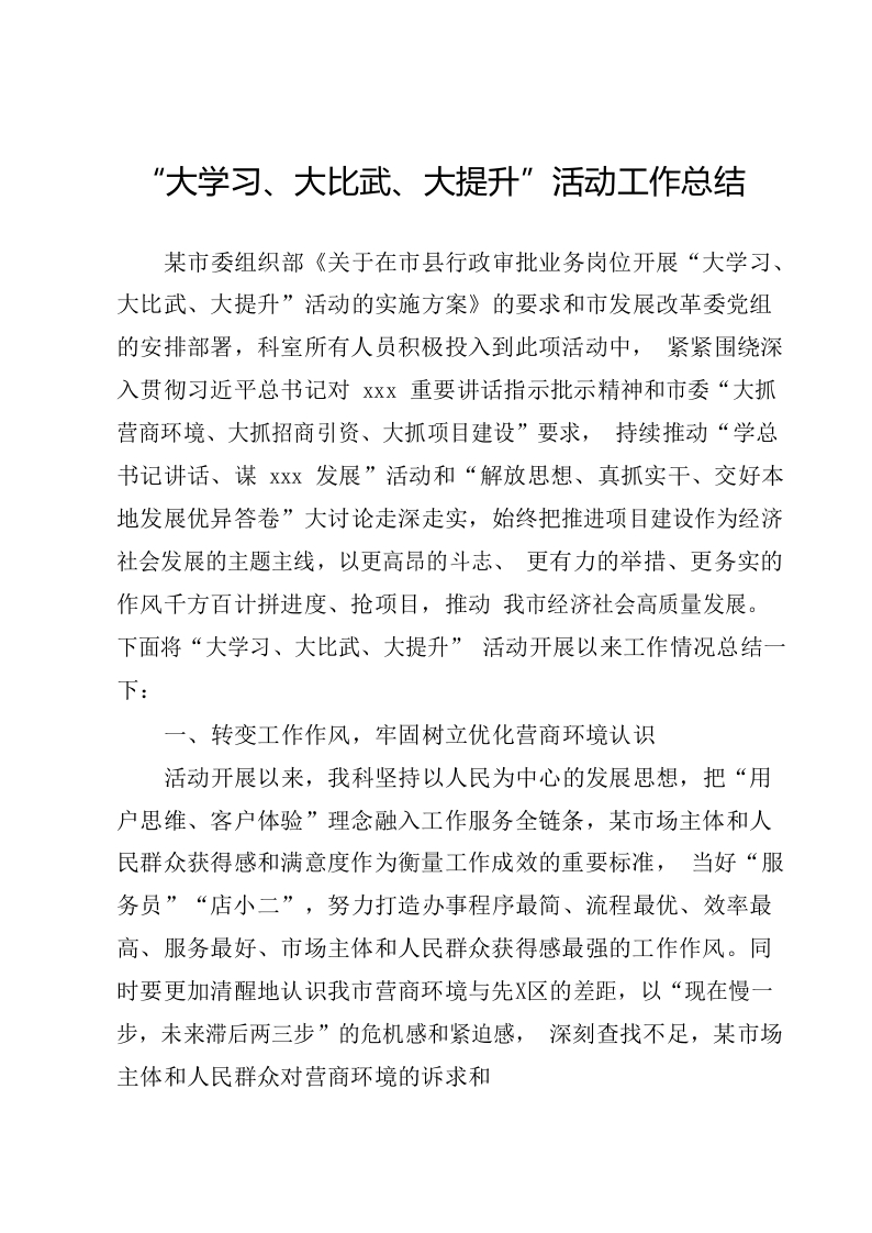 / “大学习、大比武、大提升”活动工作总结