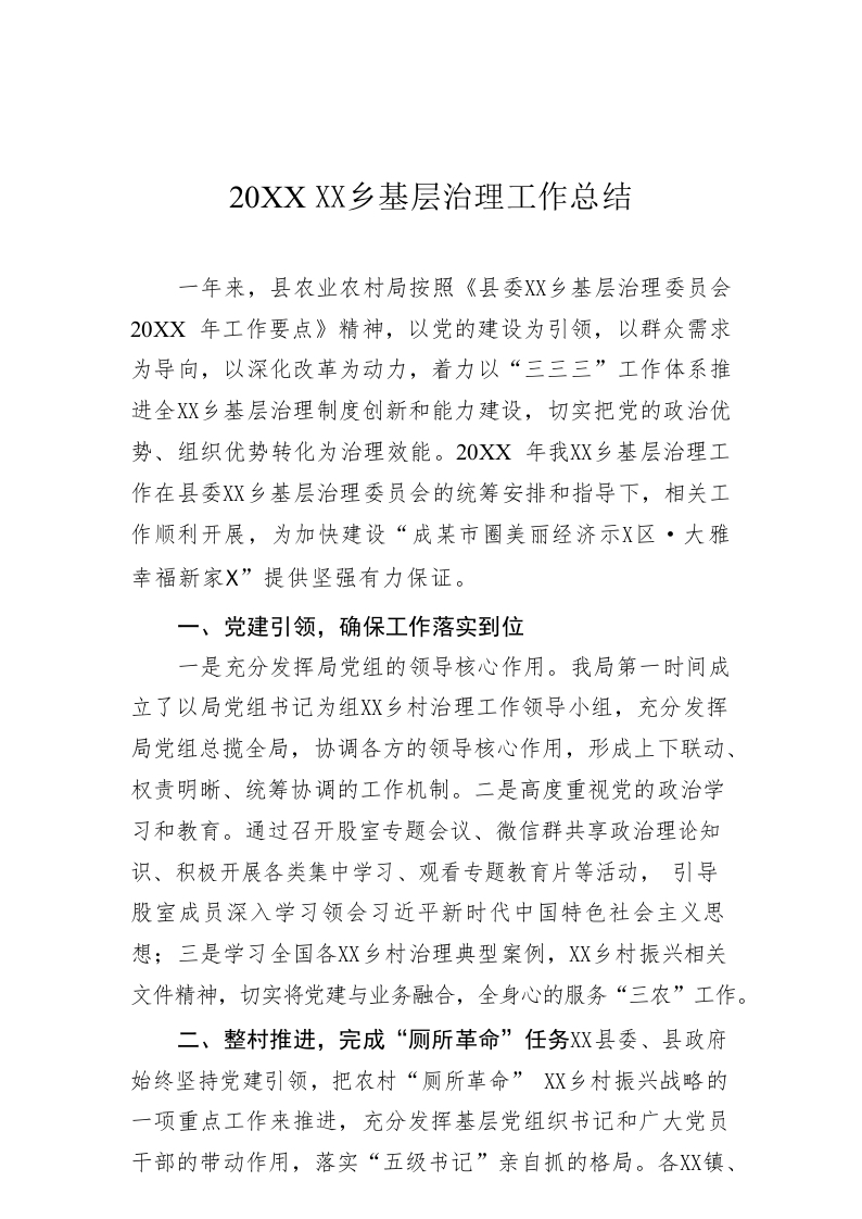 / 20XX年城乡基层治理工作总结