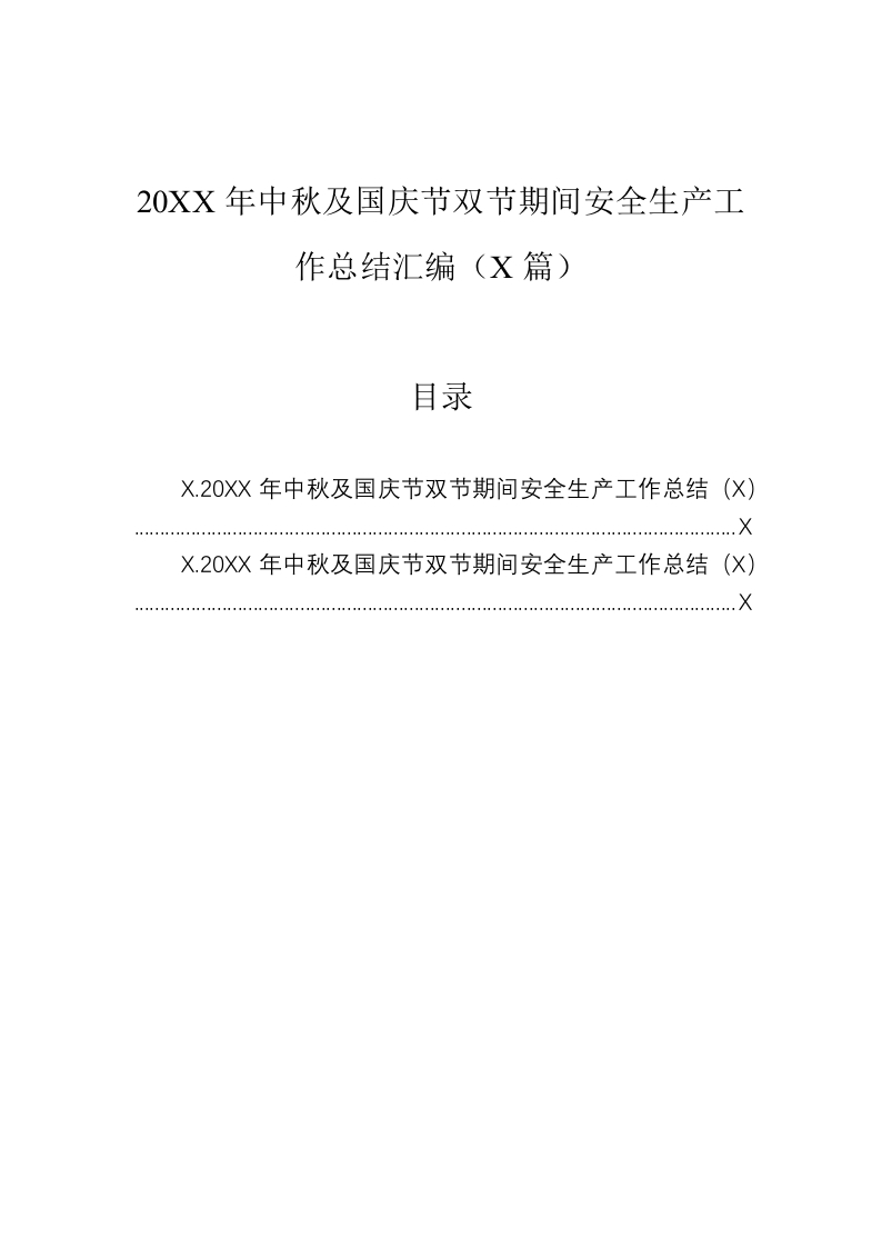 / 20XX年中秋及国庆节双节期间安全生产工作总结汇编(2篇)