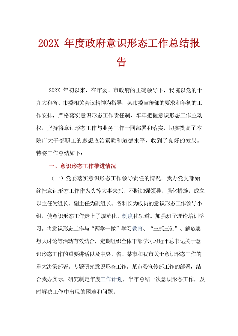 / 202X年度意识形态工作总结报告
