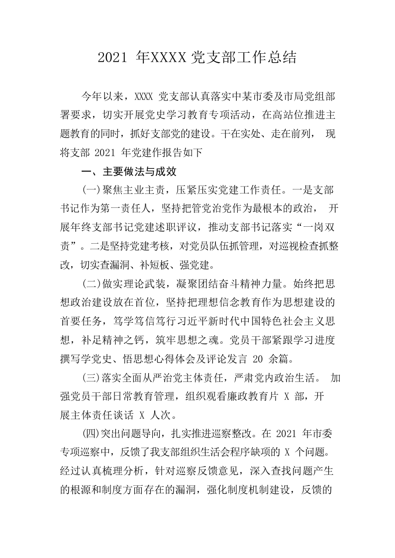 2021年科室党支部工作总结